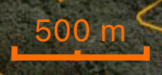 Next up is the distance scale. This gives you a relative measure of scale on the map. This will automatically scale as you zoom in and out. The distance is displayed in either meters or kilometres, depending on how far you are zoomed in or out.