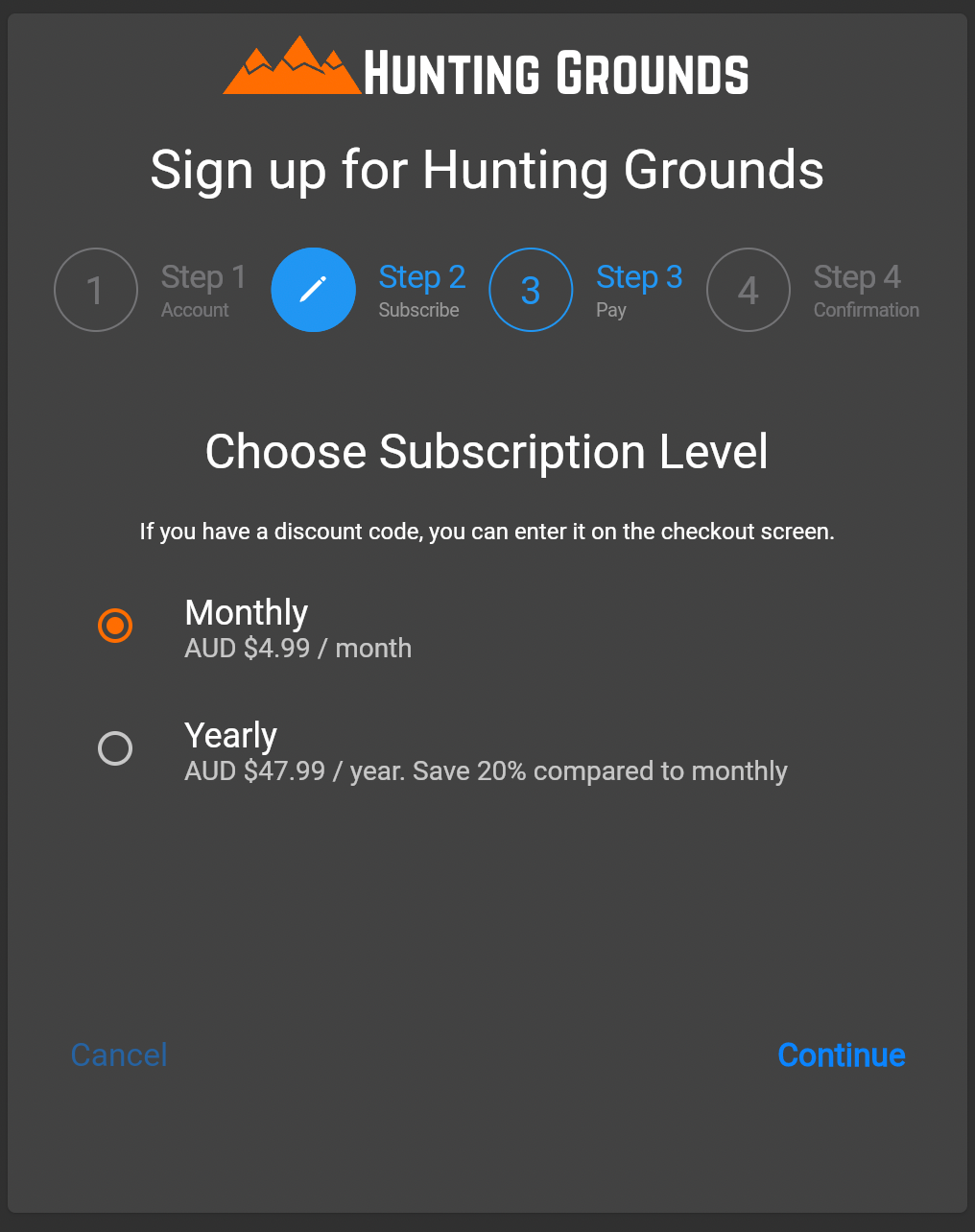 This article will walk you through how to sign up to Hunting Grounds using our web-based accounts management system. You can must use this method to redeem a promotional code (if you have one).